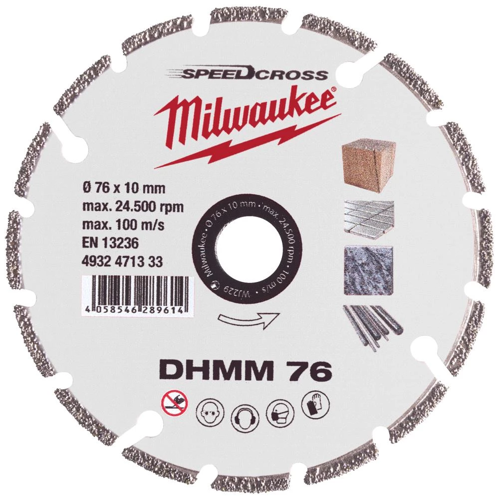 DHMM diamantskive til krævende opgaver. DHMM skiven har en høj skæreydelse grundet en høj koncentration af diamanter. Egnet til PVC, granit, fliser, hård kunststen, komposit materiale, gipsvæg, tyndt træ, gevindstænger og plademetal. Hul ø10 mm.
