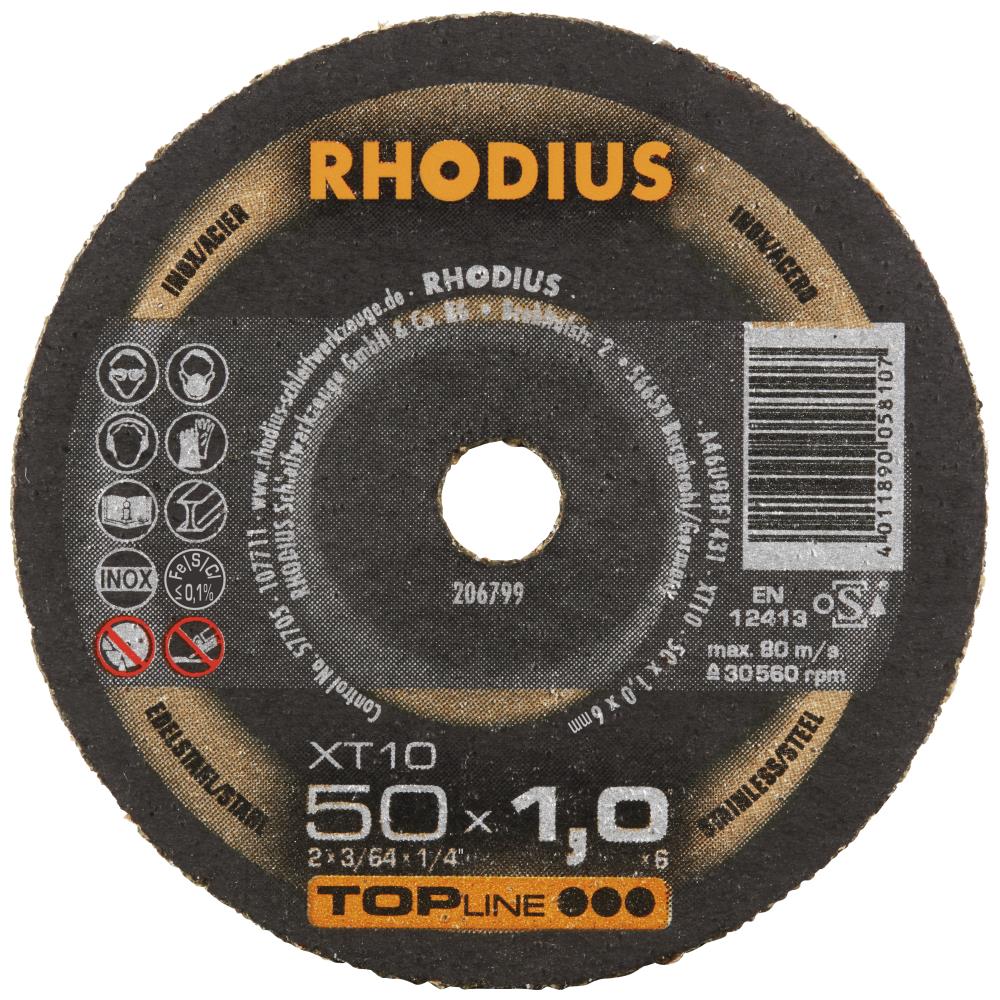 Rhodius Topline XT10 miniskæreskive. Topline XT10 mini-skæreskive er en ultra højtydende tynd skæreskive til krævende anvendelser i stål og rustfrit stål. Kompatibel med ASB XT dorn. Fås i flere varianter.