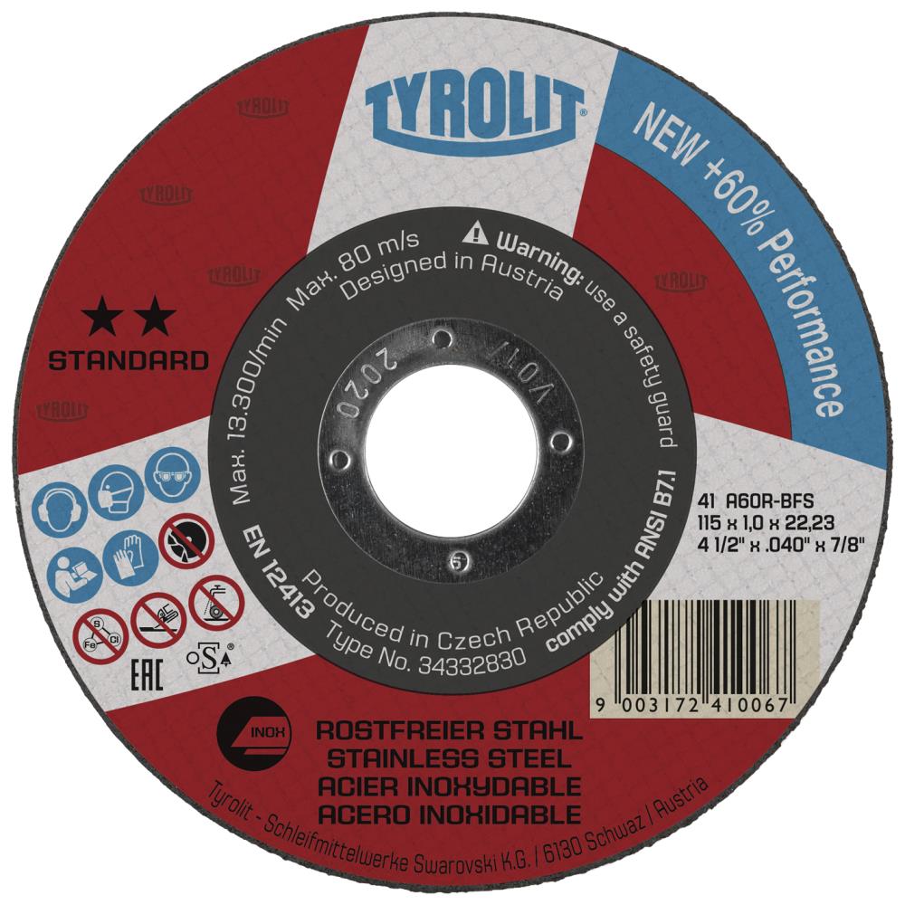 Standard skæreskive til rustfrit stål. Denne skæreskives kemiske renhed er ved bearbejdningen af rustfrie ståltyper en forudsætning for, at emnet ikke påvirkes negativt, f.eks. i form af korrosionsdannelse, gravrust eller reducering af udmattelsesstyrken. Denne skæreskive er velegnet til skæring af plader, profiler, rør, stave og helmateriale. Sortimentet af skæreskiver går fra en tykkelse på 1,0 til 1,9, hvilket giver en hurtigere og mere komfortabel skæring med et minimum af grater. Mellem 2,0 og 2,5 mm, stabilitet og desuden har skiven en meget lang levetid, og de kan anvendes universalt. Levetiden på Standard skæreskiven til stål ligger over gennemsnittet, hvilket giver mulighed for store besparelser. Udviklet specielt til brug på rustfrit stål og til at give de bedste resultater. Den reducerede gratdannelse ved brug af skæreskiven gør, at overflødigt efterbearbejdning bortfalder. Fås i flere varianter.