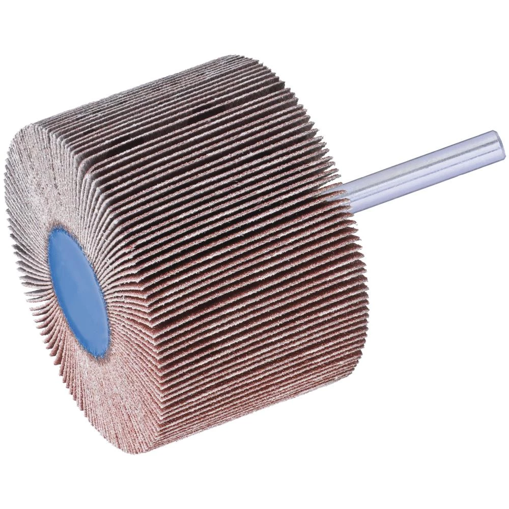 Lamelslibevifte med 6 mm skaft for slibning af stål og rustfrit stål (enkelte varianter med 3 mm skaft). Aluminium-oxid-korn til effektiv fjernelse af materiale. Viften er ideel til fjernelse af svejsesøm og efterslibning ved montage- og reparationsarbejde. Lang standtid og let udskiftning. Anbefalet periferihastighed 15-20 mtr./sek. Fås i flere størrelser og korn fra 40 til 320.