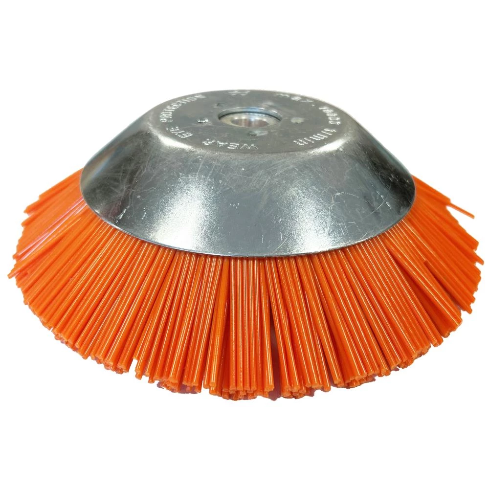 Kraftig nylonbørste til rensning af fliser og lignende. Leveres med en adapter til 20,0 mm hul. Nylonbørsten er lavet til effektiv og skånsom fjernelse af ukrudt, græs og mos fra følsomme overflader, såsom fliser og stier. Kontaktfladen med fliser, kantsten osv. bør holdes så let som muligt, da børsterne slides hurtigt ved for hårdt pres mod hårde overflader.