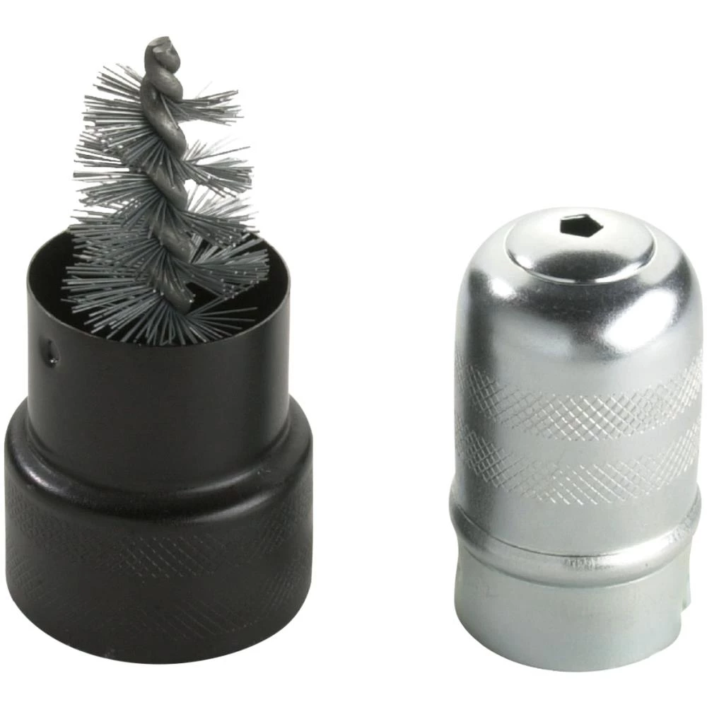 Polskorenser med stålbørster til fjernelse af rust og snavs fra batteripoler og kabelklemmer. Den udvendige børste rengør kabelklemmer – den indvendige børste rengør polerne.