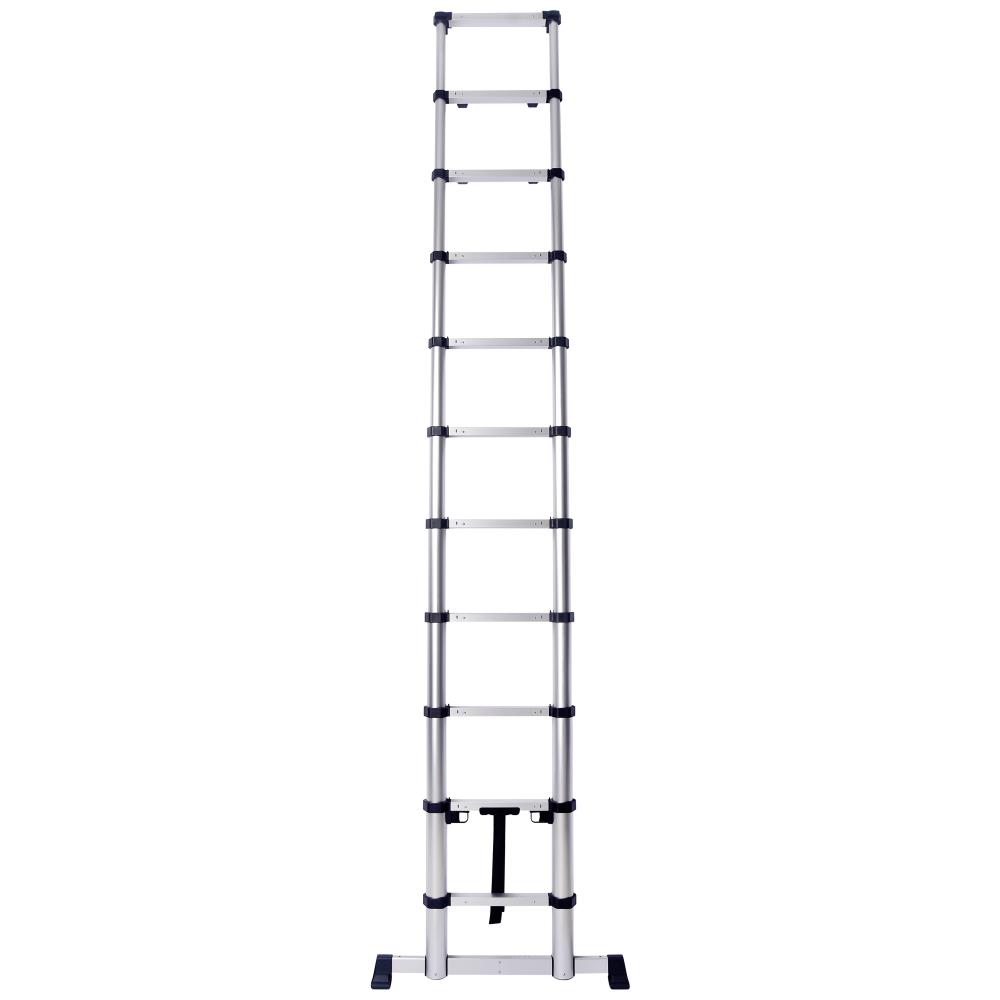 Professionel teleskopstige med indbygget stabilisator, som automatisk kommer ud når stigen foldes ud. Teleskopstigen kan anvendes i alle længder. Afstandsstykke på øverste trin beskytter væggen og kan tilpasses til en ønsket vinkel. Bærehåndtag under nederste trin. Indbygget dæmper som hindrer at fingrene kommer i klemme. Grønne prikker vises når stigen er i en sikker og låst position. EN 131-6. Fås i flere varianter.