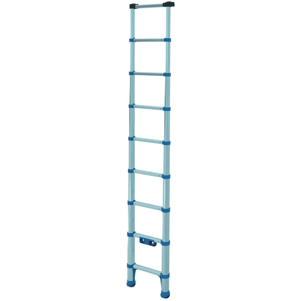 CompactStep L er en slidbestandig og pladsbesparende teleskopstige i ekstremt småt design perfekt til transport: skubbet sammen passer stigen ind i ethvert bagagerum. Stigen kan justeres til forskellige højder for individuel tilpasning til enhver opgave. Brede trin for behagelig op- og nedstigning. Behagelig at håndtere pga. de anodiserede stente. Fås i flere længder.