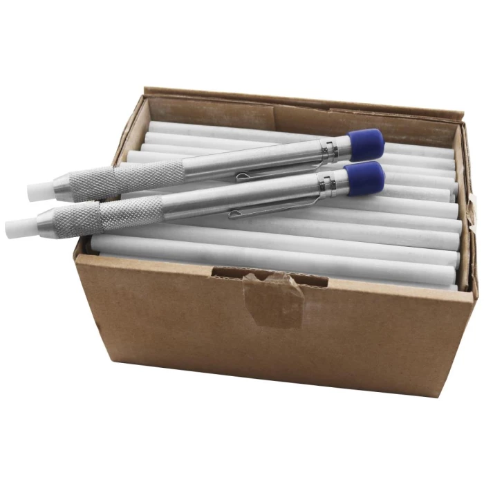 WldPro svejsekridt til markering på stål og ved svejseopgaver. Kan nemt ses gennem svejseskærmen. Høj varmebestandighed 2.000°C. Pakke med 144 stk. i rund form (125 × ø6,4 mm) og to holdere.