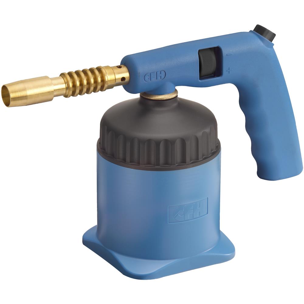 CFH blæselampe med Piezotænding. Denne model kan vendes på hoved under brug uden at flammen “blusser op”. Kompakt blæselampe kan bruges til optøning, optænding, lodning osv. Arbejdstemperatur op til 730°C.