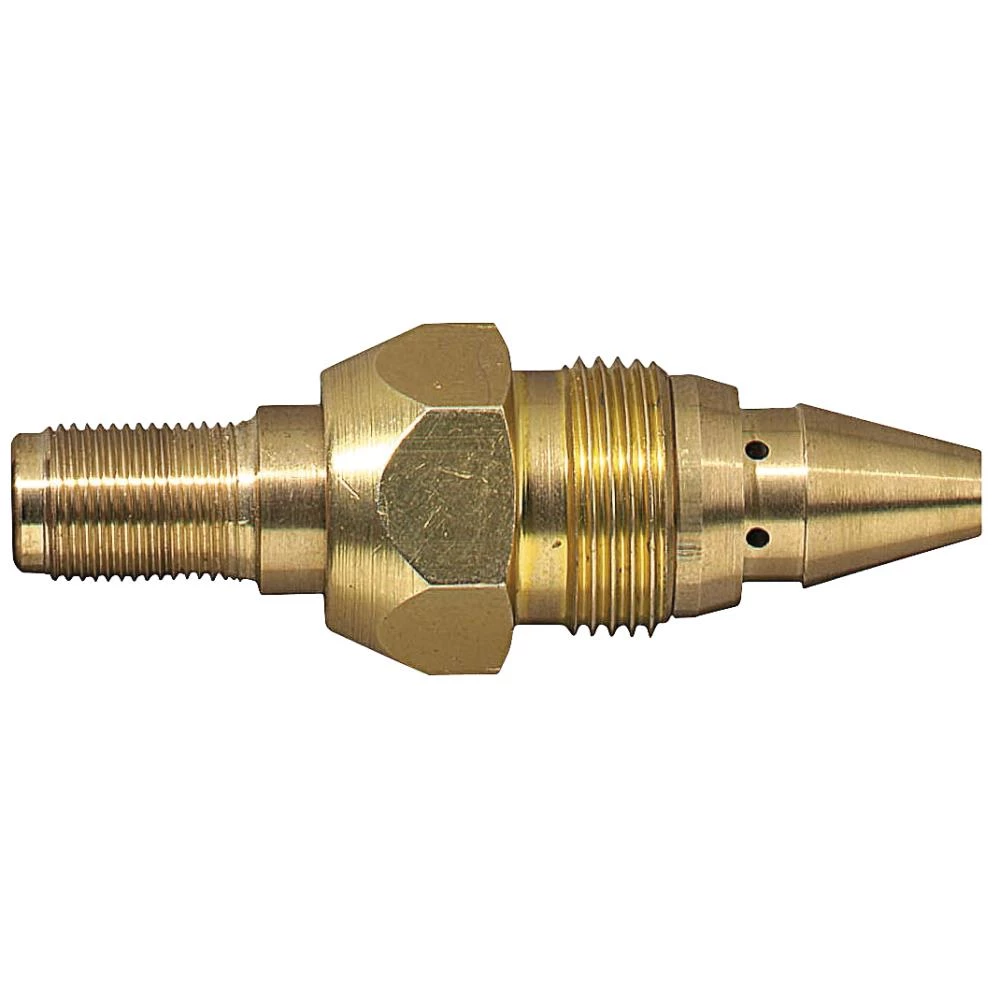 X21 varmeadapter til varmning med trykskæreindsats. Med tilføjelse af nogle få og enkle komponenter kan X21 anvendes til mange forskellige varmeprocesser. Adapteren monteres direkte i brænderhovedet på skæreindsatsen. Varmedysen skrues i adapteren med hånden. Fås i forskellige varianter.