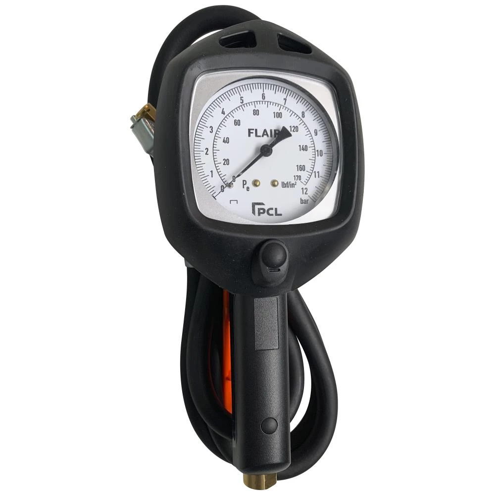 Flair by PCL mekanisk dækoppumper med ventilsystem, der sikrer hurtig oppumpning. Perfekt til dækcentre, værksteder, tankstationer m.m. Måleområde 0,1-12 bar. Pumpenippel: enkelt clip-on. Slangelængde 1,8 mtr. Måleområde (1): 12 bar. Måleområde (2): 174 psi. Certifikat medfølger.