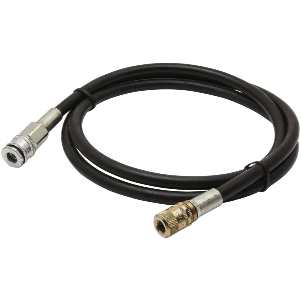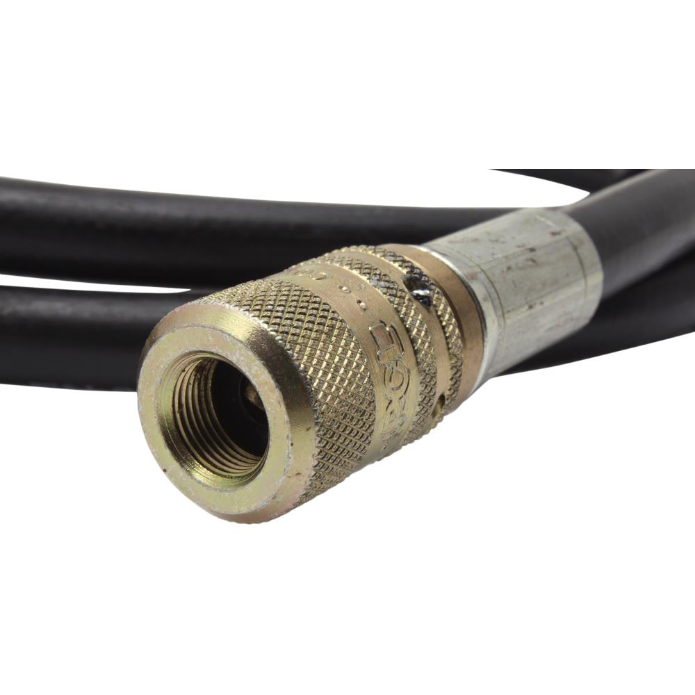 Entreprenørpumpenippel med 1/4″ indvendig gevind, til 12V1 ventiler på f.eks. entreprenørmaskiner. Komplet med 2 mtr. gummislange og XF kobling.