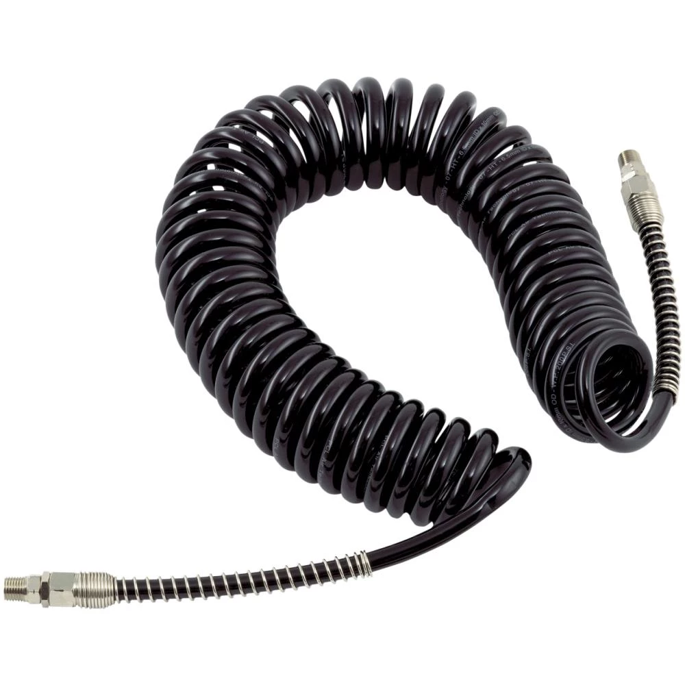 Sort PU-spiralslange med 1/4″ udv. gevind – til 41053, 41059, 41061 dækoppumpere.