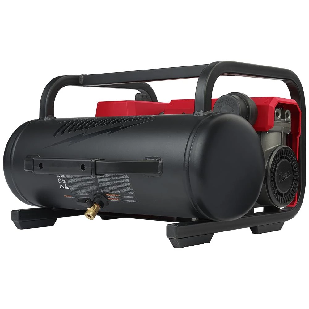 Kompressor M18 FAC-0 leverer et maksimalt lufttryk på 9,31 bar og 48 ltr/min ved 2,8 bar og 34 ltr/min ved 6 bar, hvilket er rigeligt til at drive fx sømpistoler. Med 7,6 ltr tank. En af markedets mest støjsvage batteridrevne kompressore på kun 68 dB(A) for et mere komfortabelt arbejdsmiljø. Med to bæregreb og vægt på kun 14 kg er den let at transportere. Imponerende produktivitet med driftstid nok til 1600 18G stifter på ét 12 Ah batteri (medfølger ikke). Let og hurtig justering af lufttryk. Brugervenlig betjening og let tilslutning af slange. Med fleksibelt batterisystem som passer med alle Milwaukee M18 batterier, som købes separat.