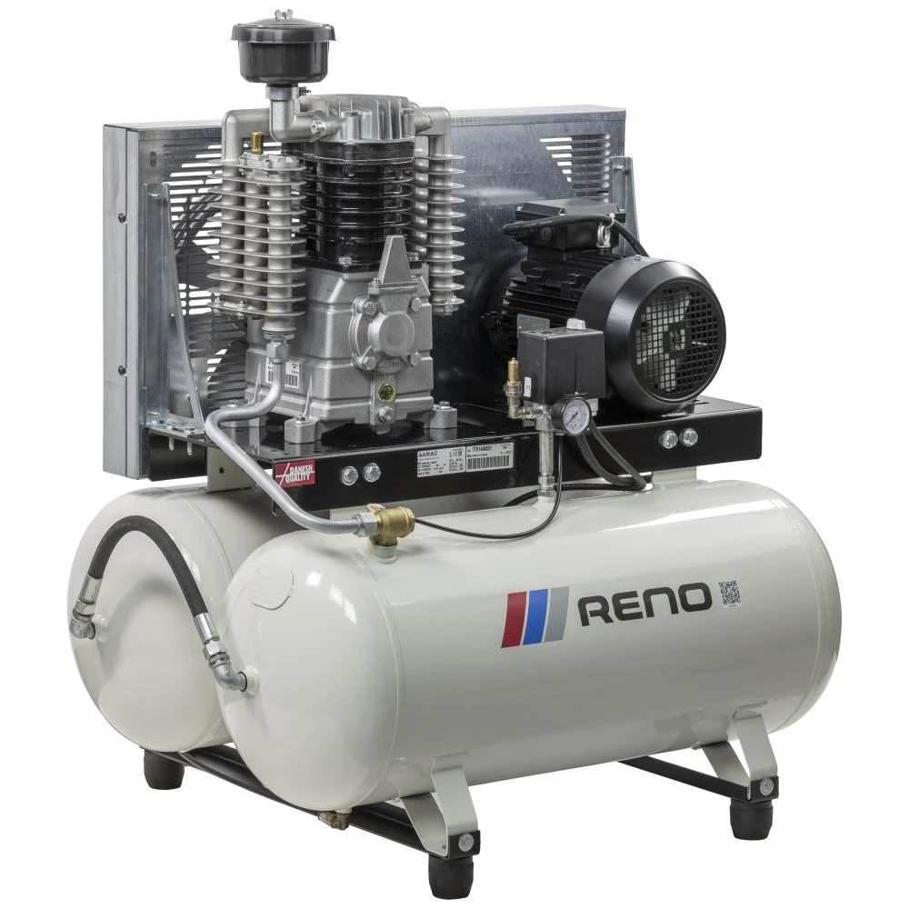 400 V Professionel Twin stempelkompressor til let industri og autoværksteder. Dobbelt 90 ltr.-beholder til endnu mere luft uden beholderkontrol. 100 % støbejernscylindre. 4,0 kW motor. Slagvolumen 666 ltr./min. Hastighed 1.000 omdr./min.