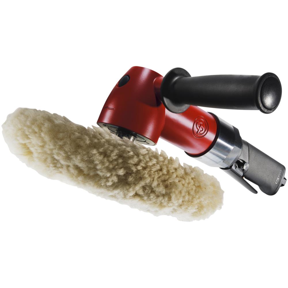 Heavy-duty pneumatisk polermaskine med kraftig 500 W motor. Leveres med 178 mm lammeuldshætte og 200 mm fleksibel polerhætte. 2.600 omdr./min. 1/4″ tilslutning. Min. slangedimension 3/8″.