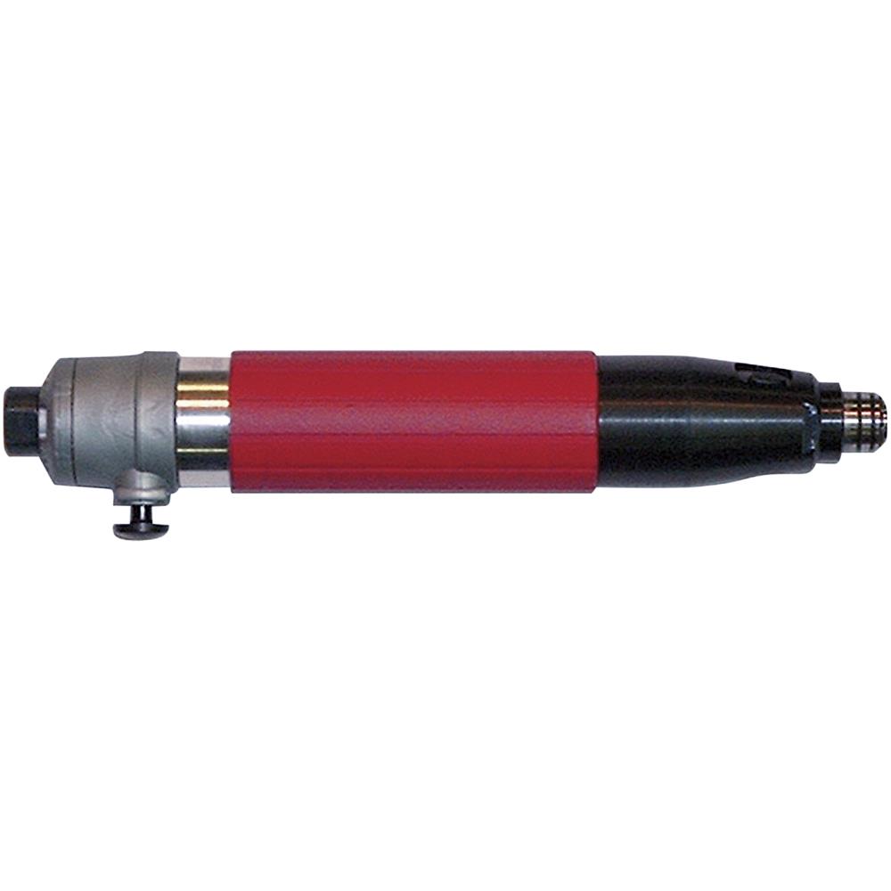 Lige reversibel skruemaskine til trykluft. Skruemaskinen er udstyret med enkelthåndsbetjent skifteknap. Ideel til kontinuerlig drift. Moment 0,4-4,3 Nm. 1.100 omdr./min. 1/8″ tilslutning. Min. slangedimension 3/8″.