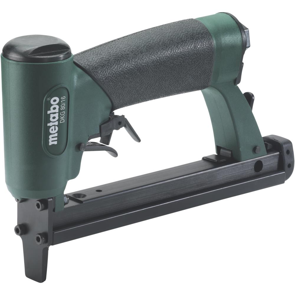 Til forarbejdning af klammer. Til fastgørelse af folier, stof, isoleringsmateriale. Håndterlig og let for også at kunne arbejde på svært tilgængelige steder. Ergonomisk komposit-hus: kuldeisolerende, glidesikkert og vibrationssvagt for komfortabelt arbejde. Gummieret håndgreb til ergonomisk arbejde uden hurtig udmatning. Klammertype 80. Klammerlængde 4 – 16 mm. Arbejdstryk 5 – 7 bar. Luftforbrug pr. slag 0,34 ltr. Vægt 0,78 kg.