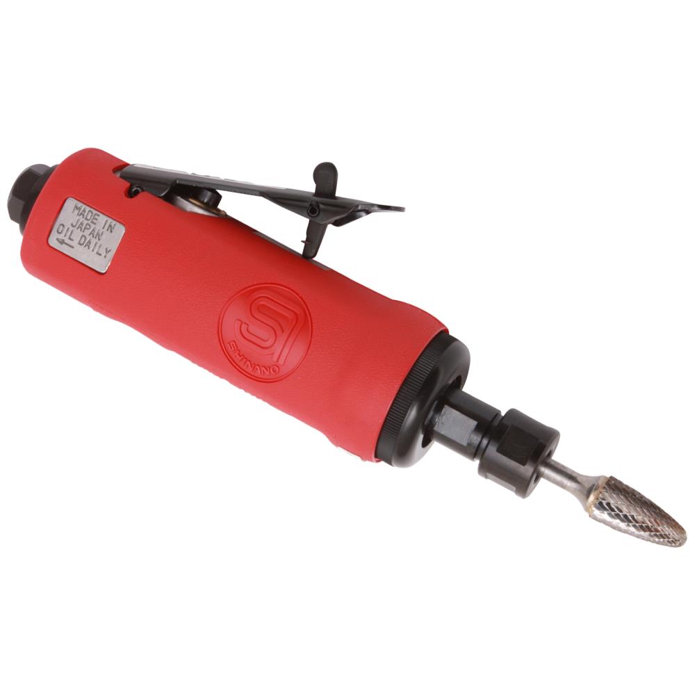 Allround lynsliber med 6 mm opspænding. Kompositgreb for bedre kontrol og komfort. Velegnet til let produktion og værkstedsbrug. 1/4″ tilslutning. Min. slangetilslutning 3/8″. Maks. arbejdstryk 6,2 bar. 25.000 omdr./min. Bagudrettet luftafgang. Lydniveau 92 db. Vibrationsniveau < 2,5 mtr./sek².