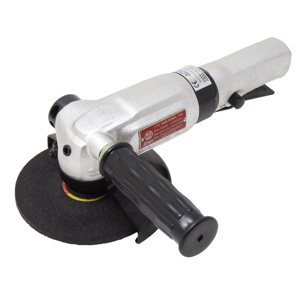 URYU tohåndsbetjent vinkelsliber for 125 mm skære- og skrubskiver. Med indbygget omdrejningsregulator der sikrer stabile omdrejninger uanset belastning.
