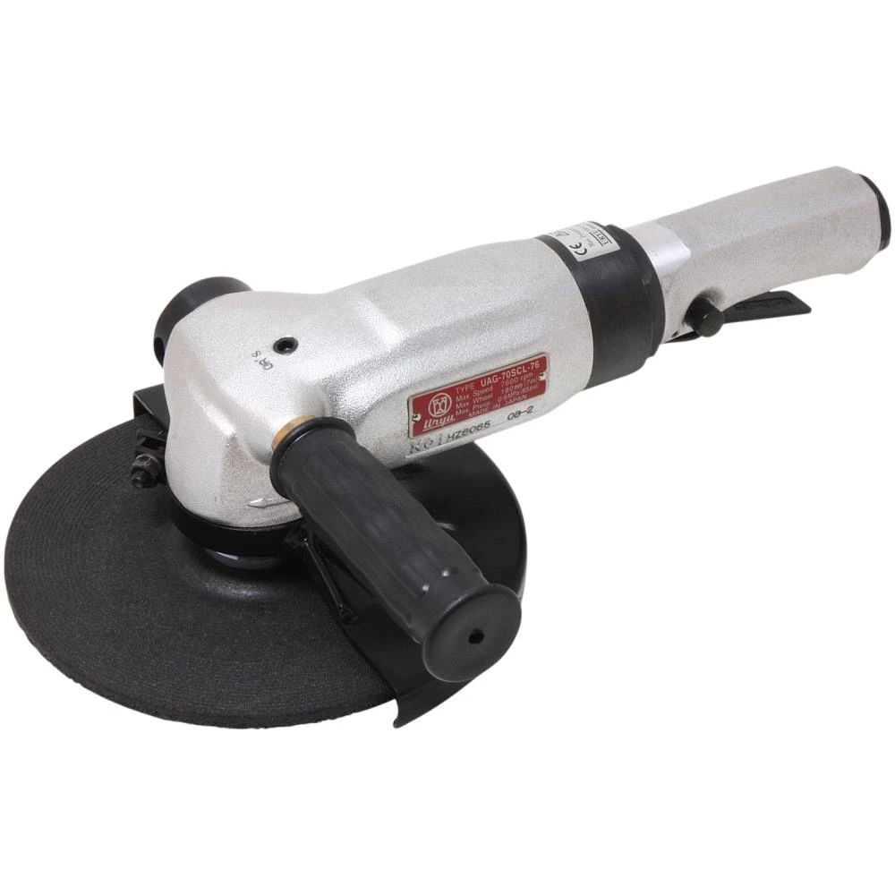 URYU tohåndsbetjent vinkelsliber for 180 mm skære, skrubskiver og fiberrondeller. Med indbygget omdrejningsregulator der sikrer stabile omdrejninger uanset belastning.