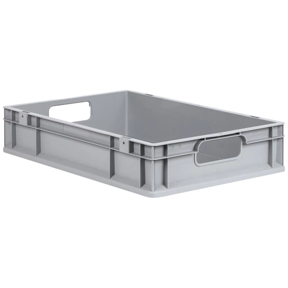 Lagerkasse grå plast 600×400×120 mm, åbne greb