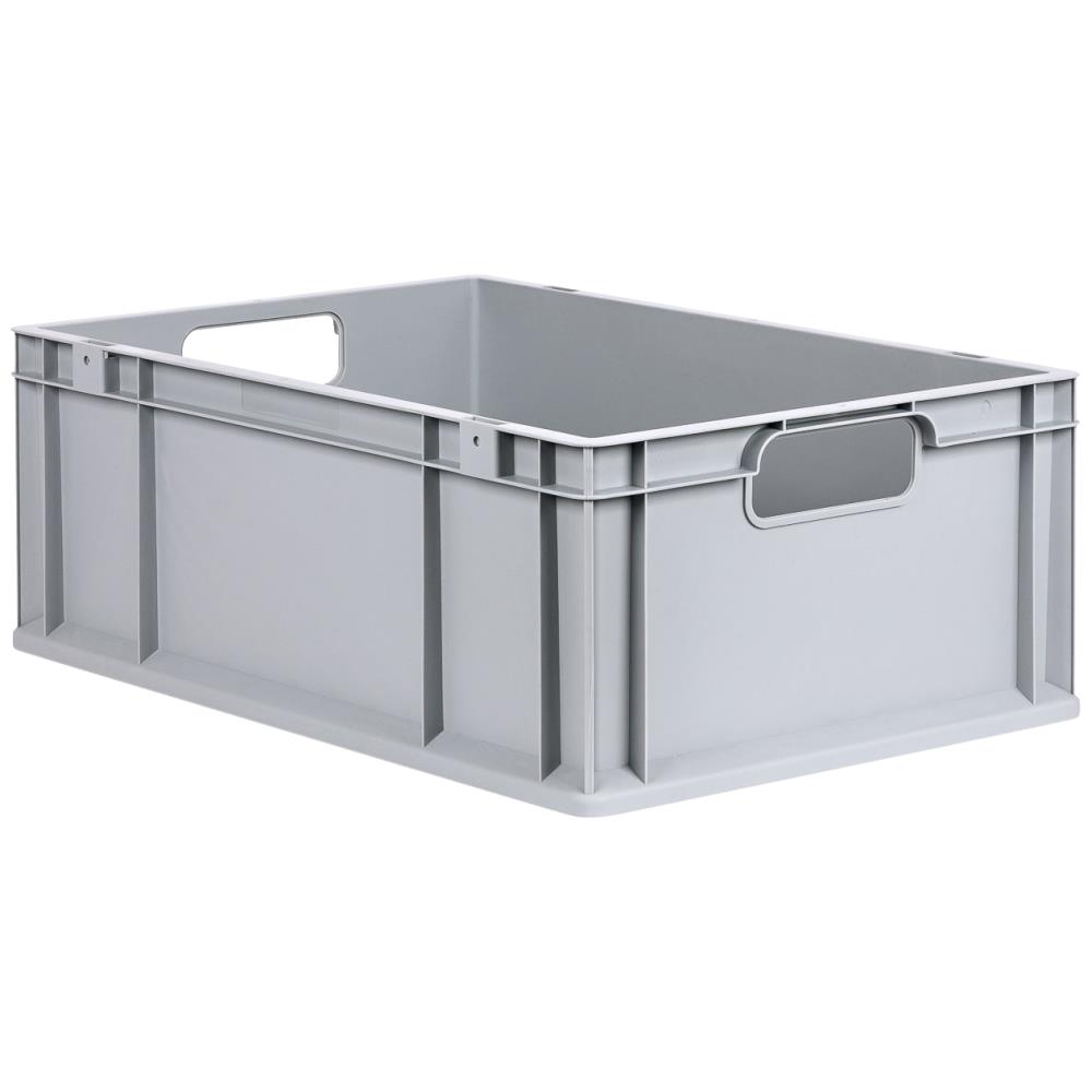 Lagerkasse grå plast 600×400×220 mm, åbne greb