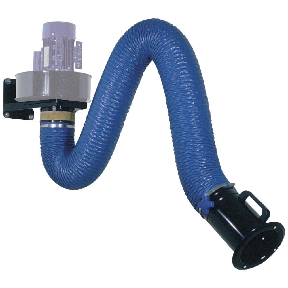Punktudsug for røg, gasser og dampe. Udsugningsarm med tre led i stabil og let udførelse. Med parallelogramteknik og tre mekaniske fjedre. Sugetragt af stål med regulerbart spjæld og gribering. Tragt kan indstilles i mere end 90° i alle retninger. PVC slange ø160 mm med indvævet stålspiral. Leveres inklusiv vægfæste – eksklusiv suger.