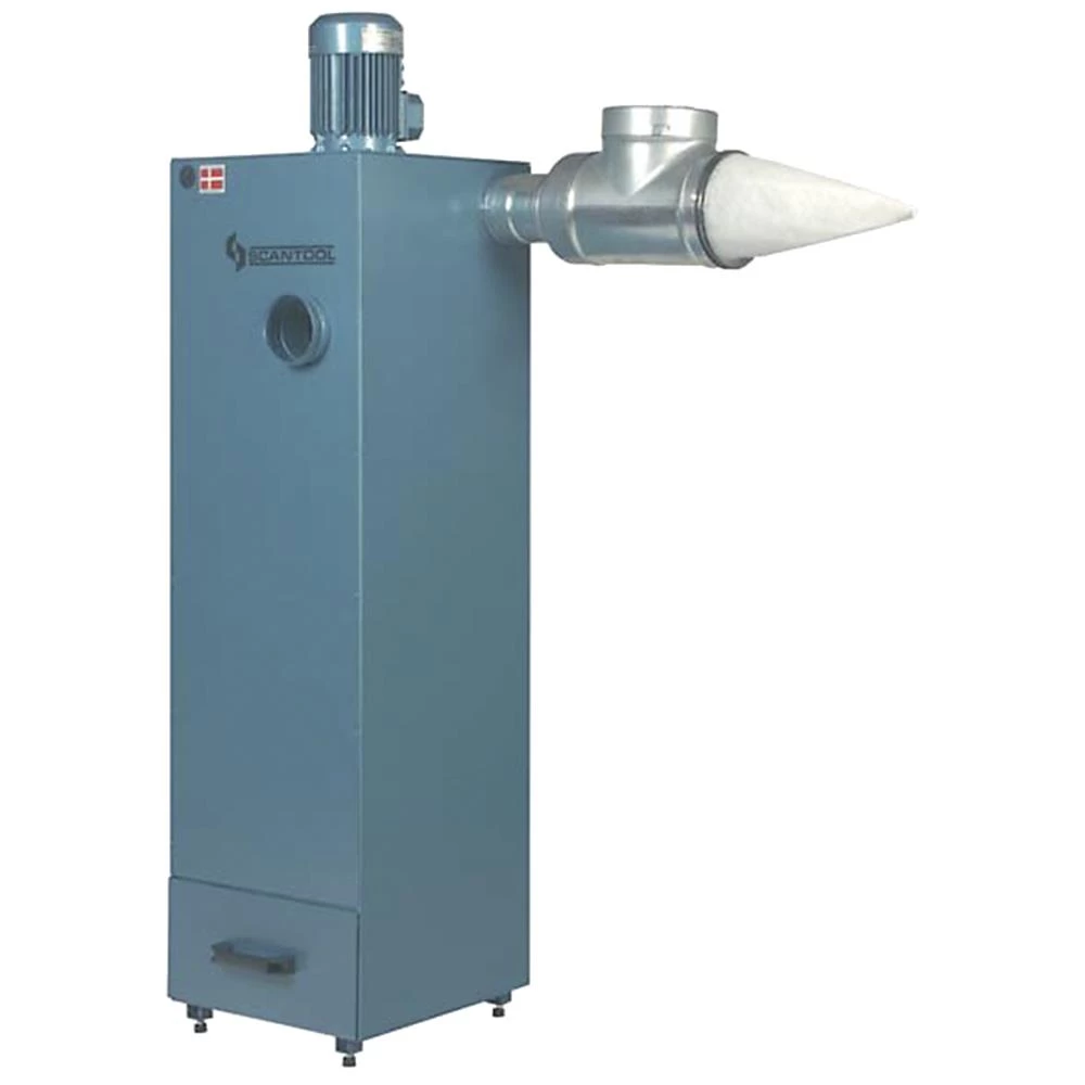 Komplet udsugnings- og filterenhed med cyklon, udsugning, opsamlingsskuffe og afgangsfilter.