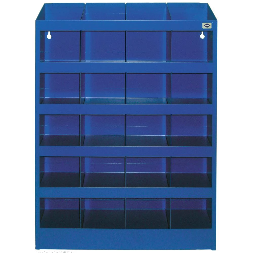 Boltreol med skillevægge. Svejst kabinet, som er forberedt til vægophæng. Fås i flere varianter med enten lukket eller åben top, sidstnævnte giver mulighed for pladsbesparende udnyttelse af reolens top og er desuden konstrueret med fleksibel rumstørrelse.