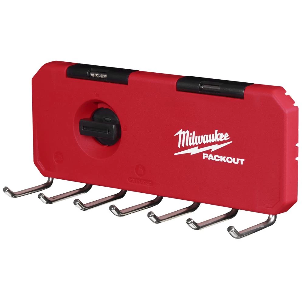 Krogrække med 7 stærke stålkroge til opbevaring af tungt værktøj og genstande. Belægning på krogen beskytter krog og de opbevarede genstande. Nem og hurtig adgang til alle værktøjer. Låsemekanisme sikrer nem og sikker montering. En del af Packout opbevaringssystem. Kapacitet 9 kg.
