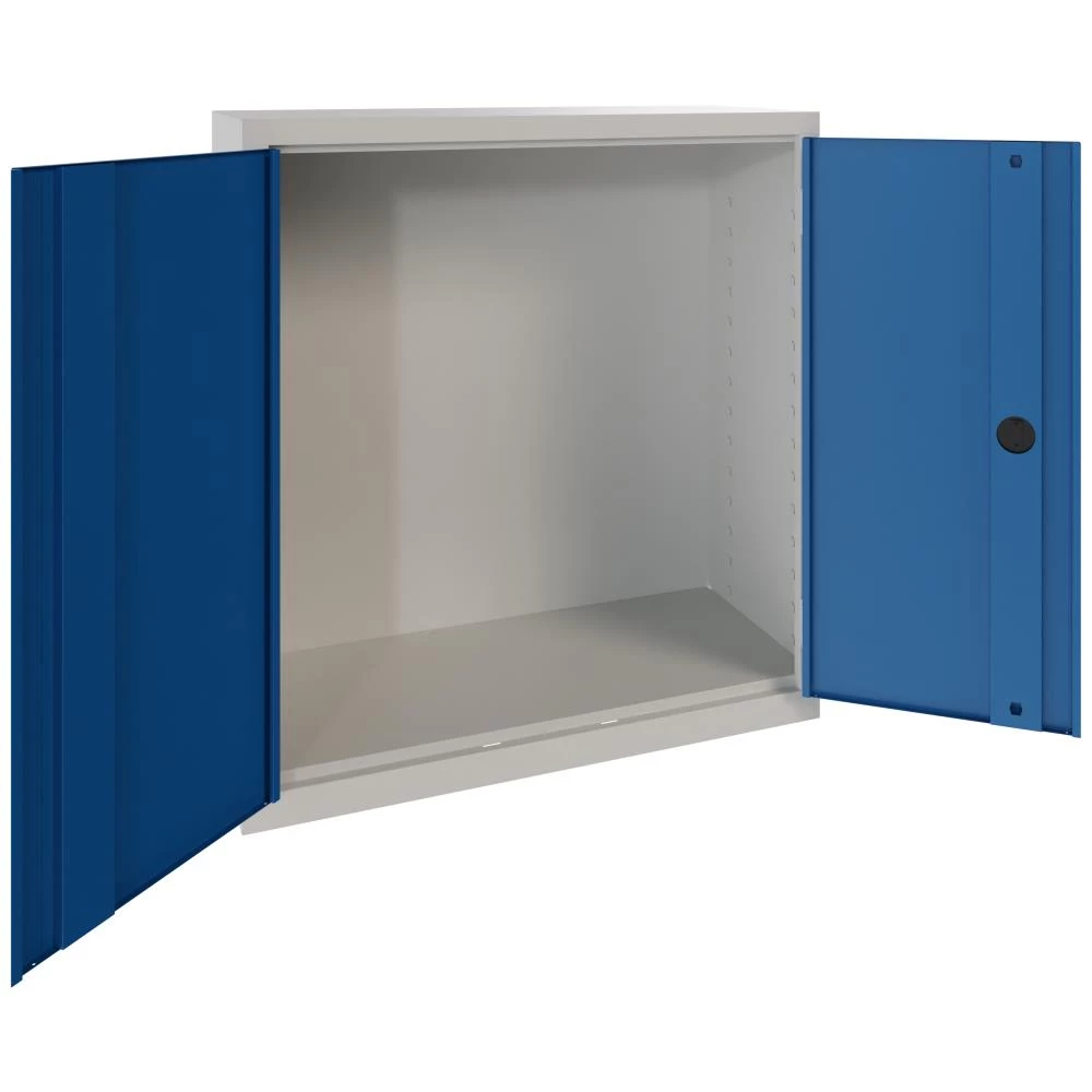 Robust materialeskab med god opbevaringsplads. Fleksibel indretning, som dækker behovet for opbevaring af værktøj, mindre maskiner, dokumenter, bits, søm osv. Låger med udvendige hængsler åbner 180°. Fremstillet af fuldsvejst stålplade. Lysningsmål (H×B×D): 945×920×425 mm. Fås med eller uden hylder – hylderne kan flyttes uden brug af værktøj og har en belastningsevne på op til 60 kg.