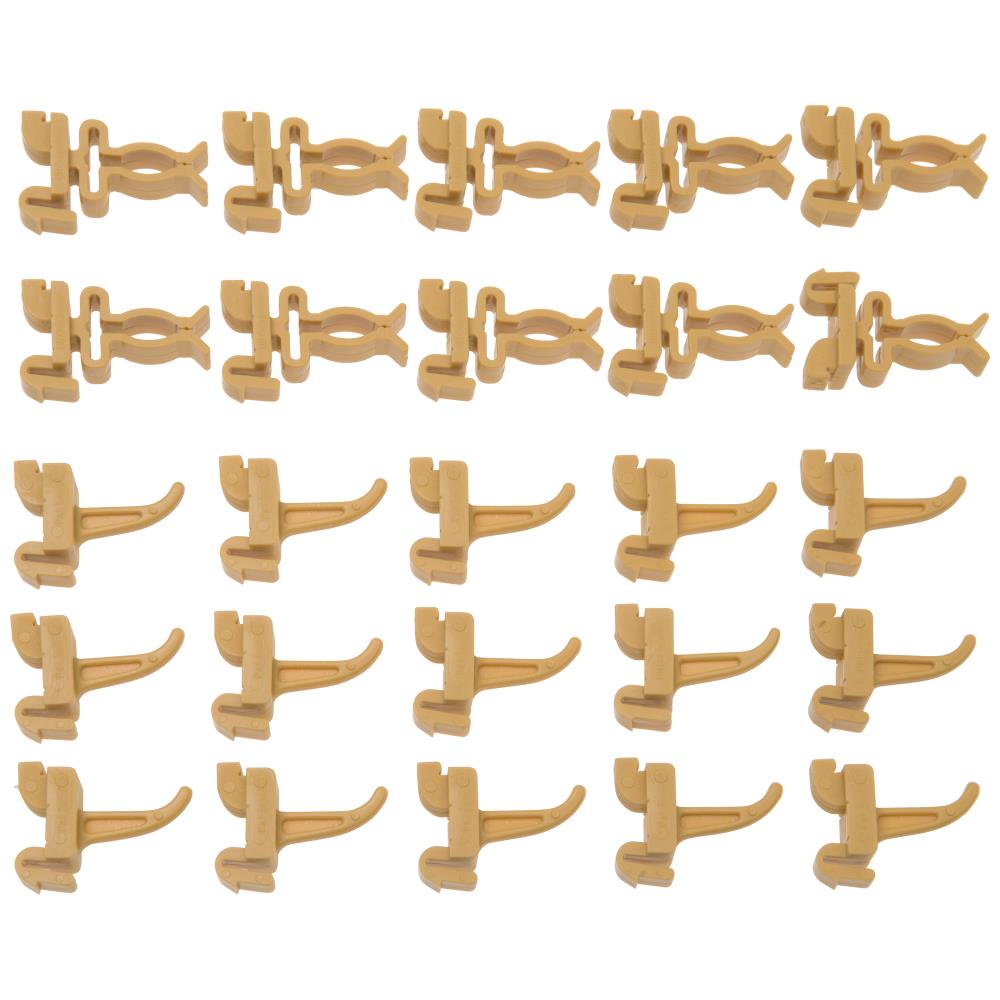 PreWo krogsæt 25 til værktøjstavler med 10×10 mm huller og centerafstand 20 mm. Der findes et bredt udvalg af praktiske PreWo løsninger til værktøjstavler, så hvert stykke værktøj får sin egen plads. Sættet indeholder: 15 stk. plastkroge 30 mm og 10 stk. fjederklemmer.