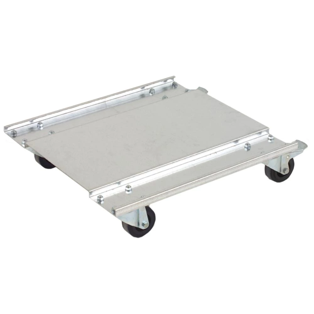 Rullevogn af profilbukket plade med fire drejelige nylonhjul heraf to med bremse. Til CS-1 og CS-4 computerskabe.