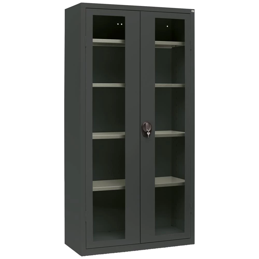 Fuldsvejst materialeskab til opbevaring af værktøj, maskiner, arbejdstøj, dokumenter, bits, søm osv. Der er mange muligheder, både hvad angår størrelse og indretning. Denne model er med transparente låger og fire galvaniserede hylder (bæreevne 60 kg pr. hylde). Som standard låses Blikas materialeskabe med Paskvillås inkl. 2 nøgler.