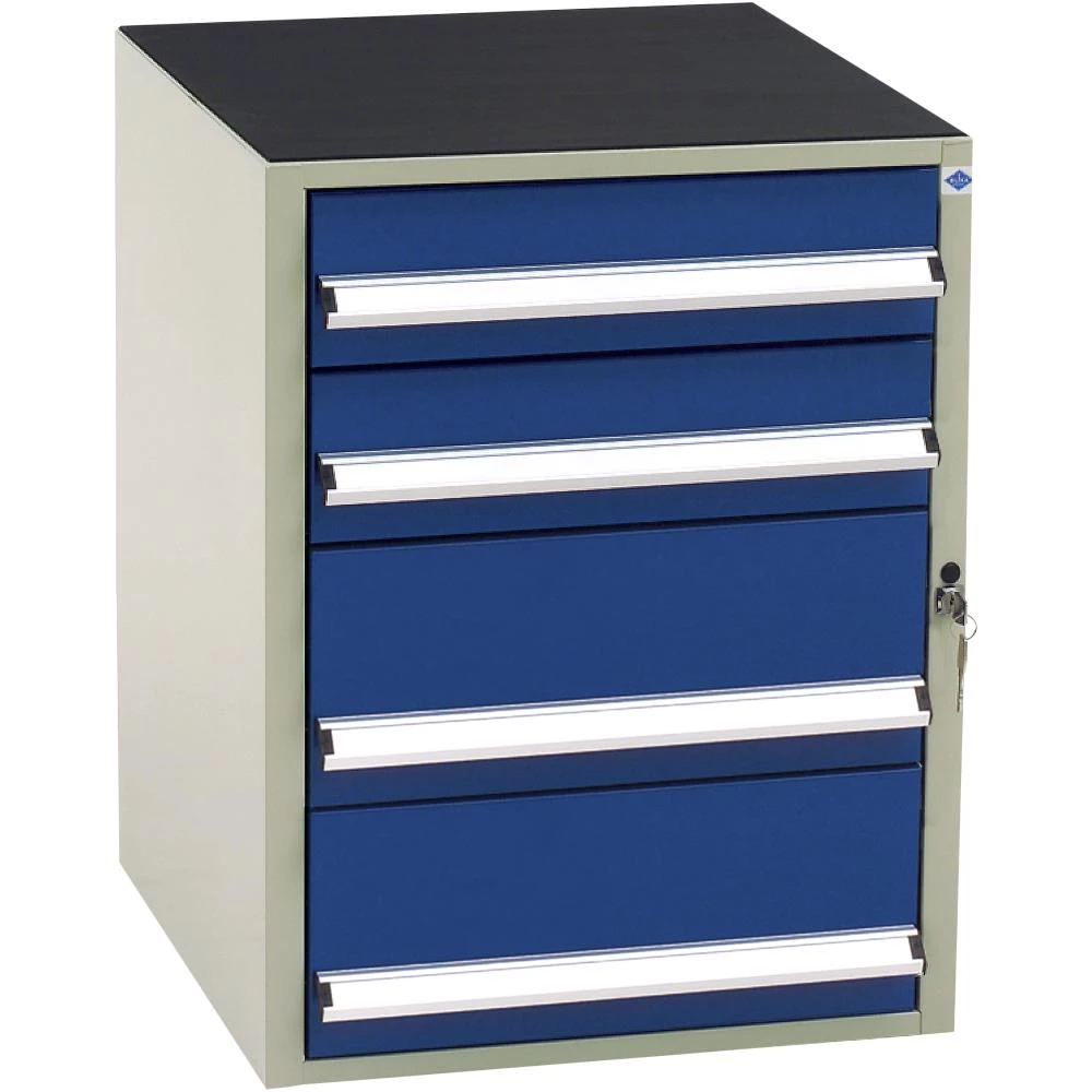Skuffeskab i mange varianter, som muliggør den optimale indretning af lageret eller værkstedet. Letløbende skuffer på stålkuglelejer med 100 % udtræk giver optimal udnyttelse. Skufferne er udstyret med skuffespærre. Gribelisten i aluminium er monteret med tekstskinne i transparent folie. Toppen af skabet er som standard udstyret med en riflet gummimåtte. Fås i flere varianter.