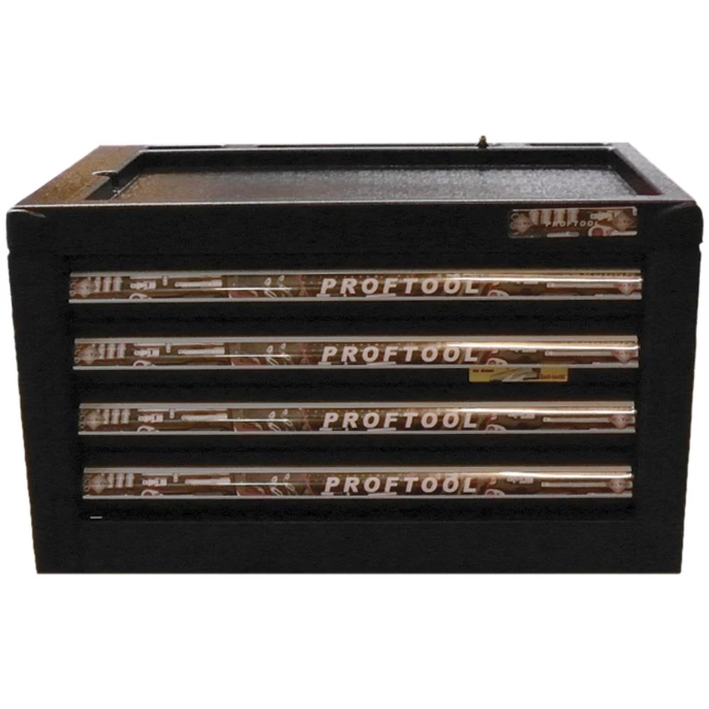 Sort værktøjskabinet med 4 skuffer. Lille model uden hjul.
