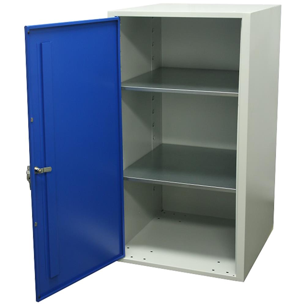 Værktøjsskab med to flytbare og galvaniserede hylder.