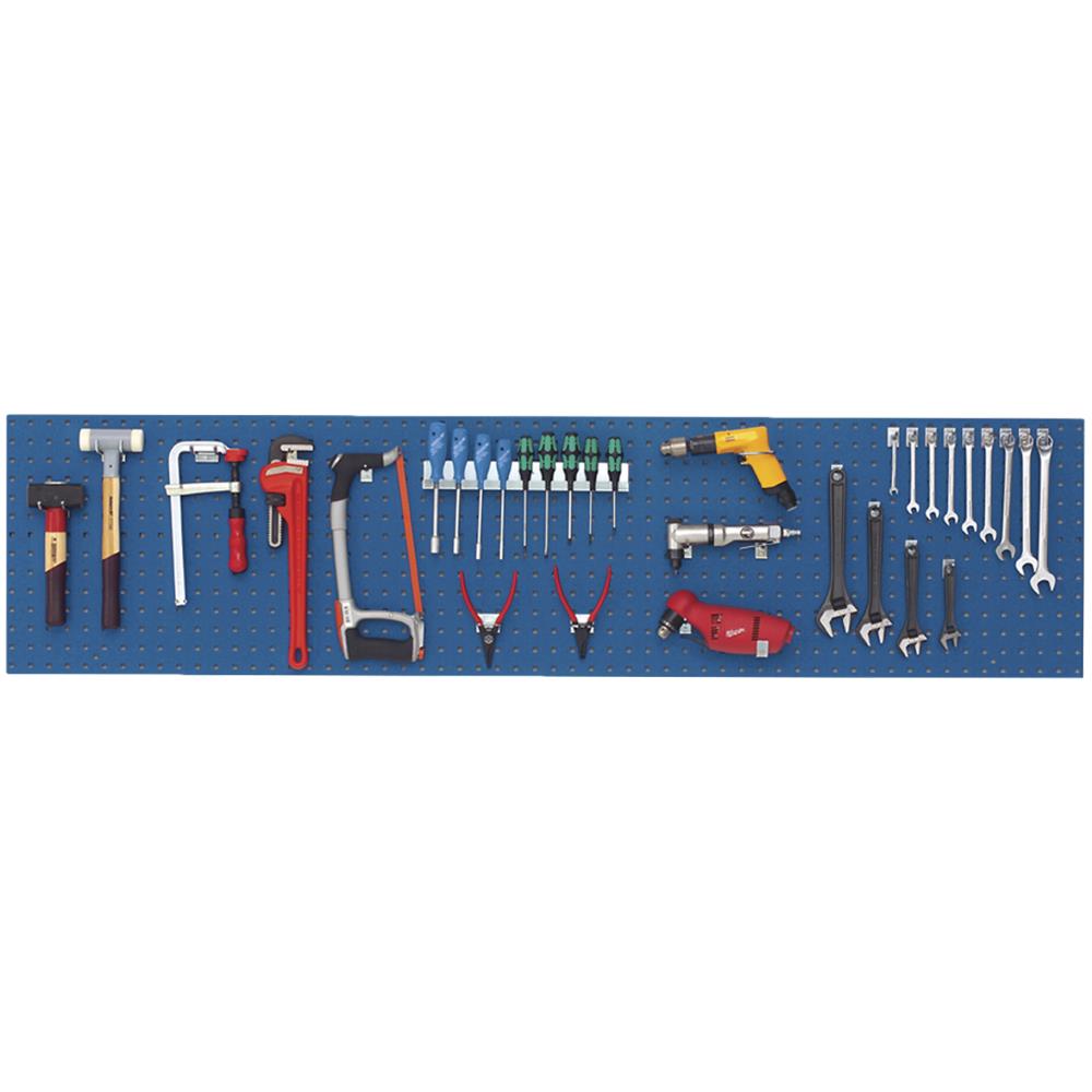 Værktøjstavle til værkstedsbord. Tavlen har 10×10 mm huller og centerafstand 34 mm. Fås i flere varianter.