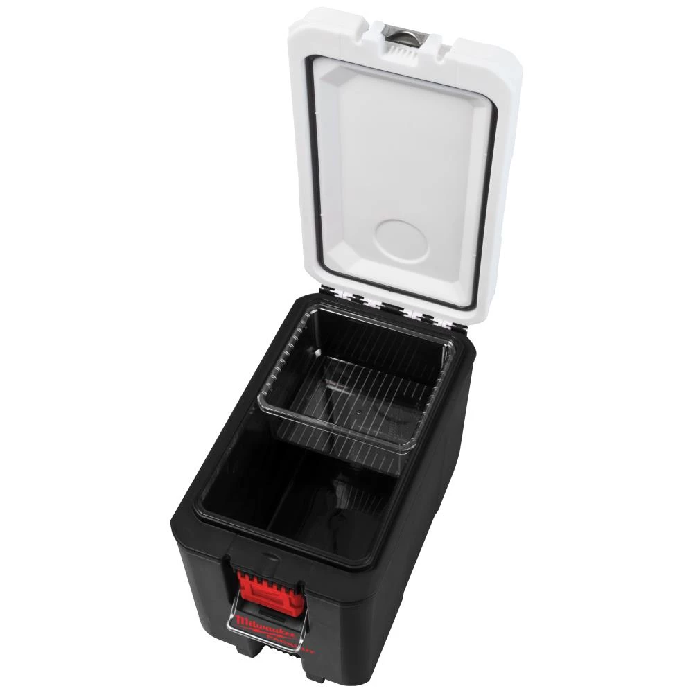 Køleboks med dobbelt premium-isolering, som holder indholdet koldt i op til 30 timer. Køleboksen er udstyret med integreret flaskeåbner og aftagelig bakke til separat opbevaring af personlige genstande som er hævet over is og vand i bunden. Fremstillet af slagfast materiale så den kan klare hverdagen på byggepladsen. 15 ltr. kapacitet. IP 65-beskyttelse forhindrer lækage og beskytter indholdet mod snavs og skidt. En del af Packout opbevaringssystemet.