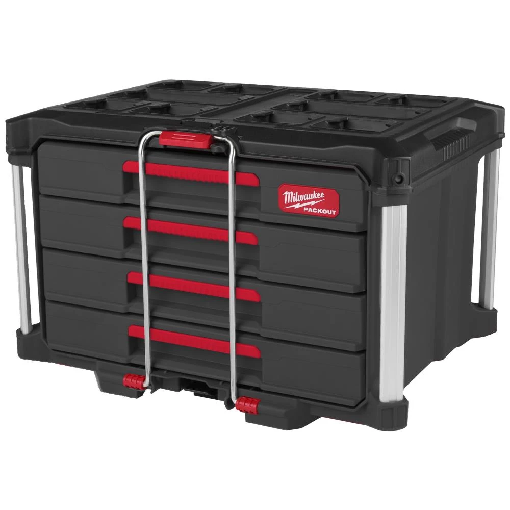 Packout skuffeboks er en del af det modulopbyggede opbevaringssystem, som giver let adgang til værktøjet – også når det er placeret i bunden af modulerne. Konstrueret med slagfast polymerer for holdbarhed på byggepladsen. Skufferne er udstyret med metalforstærkede hjørner og kuglelejer i stål, som gør at de uden problemer glider let med en vægt op til 11 kg per skuffe. Derudover er der sikkerhedslås, som forhindrer uønsket åbning af skufferne under transport og gør det muligt at lukke skufferne med hængelås. Skufferne leveres med et sæt med hurtigjusterende skillevægge, der lader brugeren tilpasse skuffens udformning for bedre organisering. Fås i flere varianter.