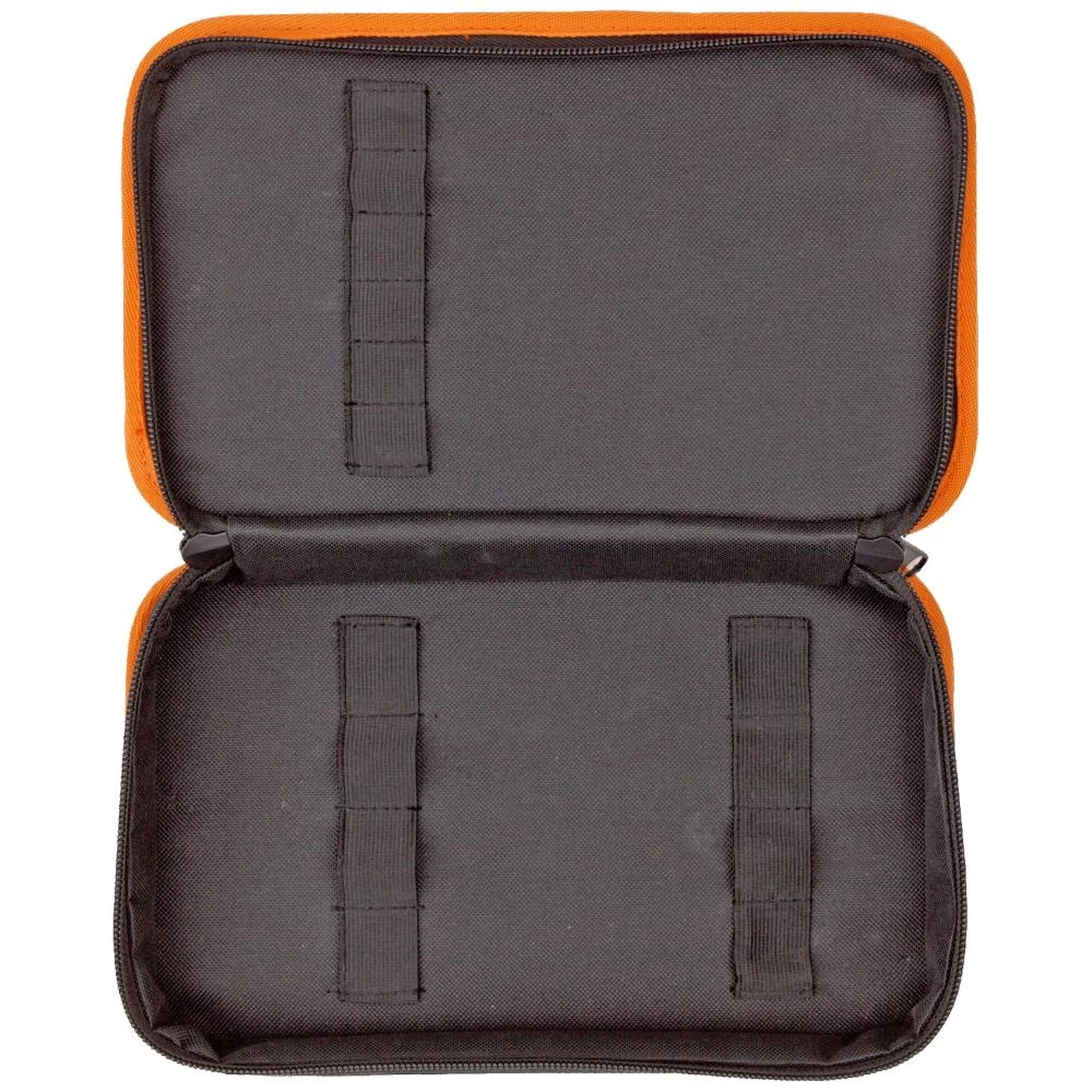 Værktøjsmappe i kraftigt stof med flere elastikker i bund og låg for bedre værktøjsfordeling. Mappen har blødt indvendigt for, kortholder foran og på siden til identifikation af eksternt indhold, lomme til målebånd, kortholder og mobil, samt forskellige lommer og separatorer. Fås i tre varianter hhv. mini (2,4 ltr.), medium (6,0 ltr.) og stor (12,0 ltr.)