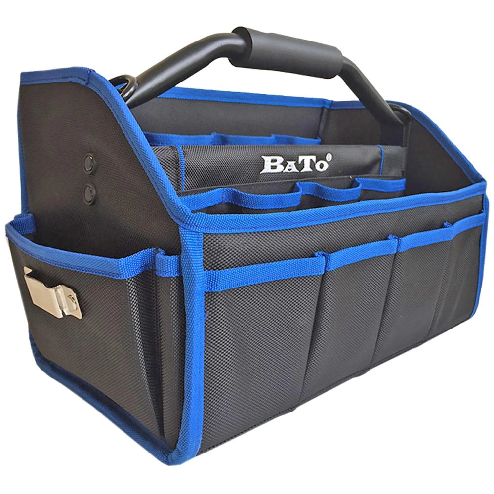 Solid, åben værktøjstaske i kraftig polyester med forstærkede syninger rundt i kanterne og på alle lommer. Fast bøjle med skumhåndtag og aftagelig bærerem giver brugeren de bedste forudsætninger for transport af værktøj. Tasken er designet med mange praktiske lommer både indvendig og på ydersiden. Fås i flere størrelser.