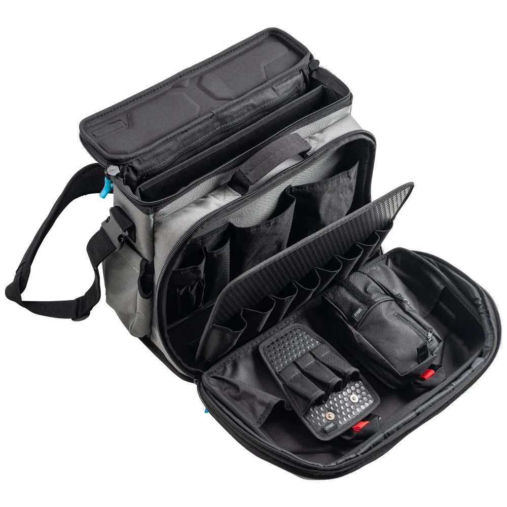 FidLock Tex-223 værktøjstaske medfølgende tre moduler hhv. tre lommer, mini taske med magnet, mini-værktøjsholder, samt bælte. Et robust system, som giver maksimal fleksibilitet på byggepladsen. Tasken kan udvides med op til fem ekstra moduler ved hjælp af FidLock systemet. Disse moduler kan fastgøres til værktøjstasken eller til et bælte. Værktøjstasken er fremstillet af slidstærk polyester med holdbare lynlåse. Designet byder på justerbar og polstret skulderrem, forlomme der åbner 90° med 4 lommer, aftageligt værktøjspanel med 10 løkker og 8 lommer, 2 fastgørelsespunkter til værktøjsmoduler med Fidlock-systemer, indvendig lomme til notesbog og A4-dokumenter, samt bagklap til fastgørelse på vogne under transport. Volumen 22,3 ltr. Bæreevne 10 kg. Leveres uden værktøj.